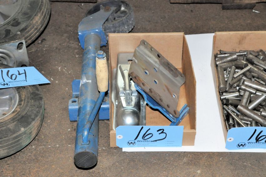 Lot-Trailer Tongue Jack and Coupler with Mounting Plates in (1) Box on Floor Under (1) Table