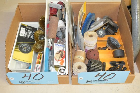 Lot-Various Sanding and Wire Wheels, Etc. in (2) Boxes on Floor Under (1) Table