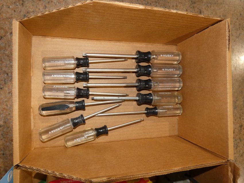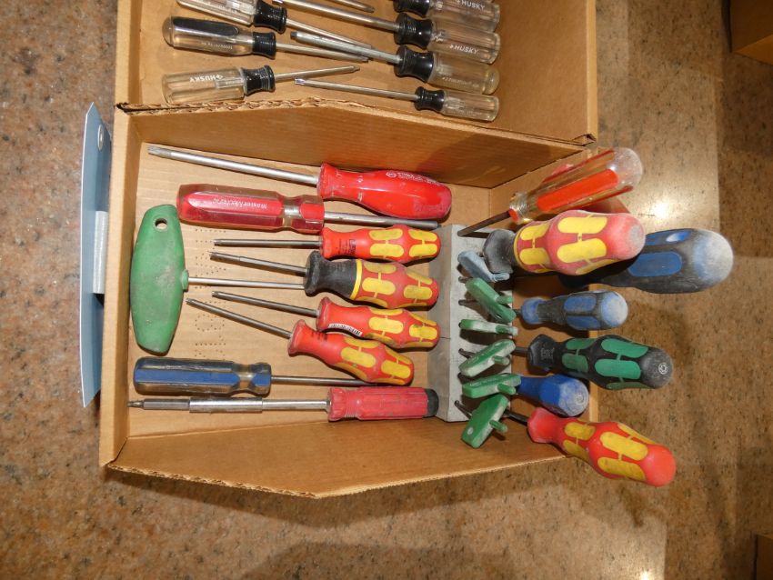 Lot - (2) Boxes Assorted Screwdrivers- Husky, Sandvik, Wiha and Master Mechanic