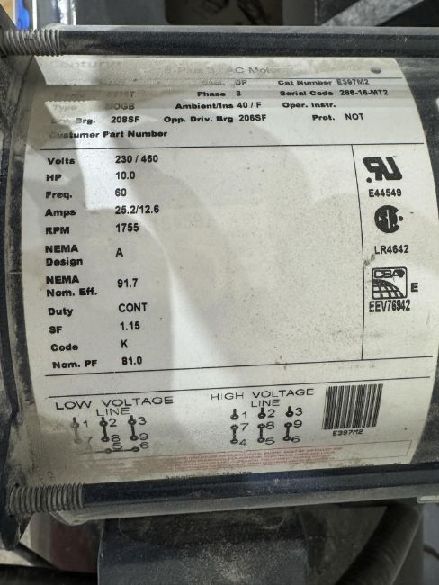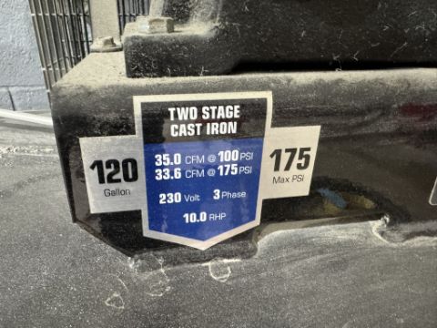 Industrial Air 10 HP 2-Stage Air Compressor, 175 Max PSI, Serial Number SN1303108T0750507
