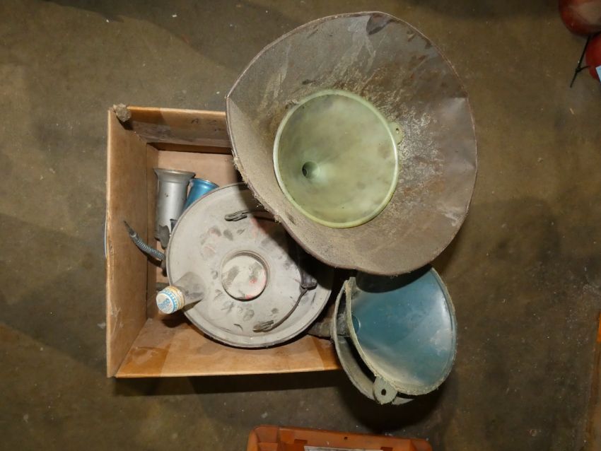 Lot - (1) Box of (4) Funnels and (3) Oil Cans