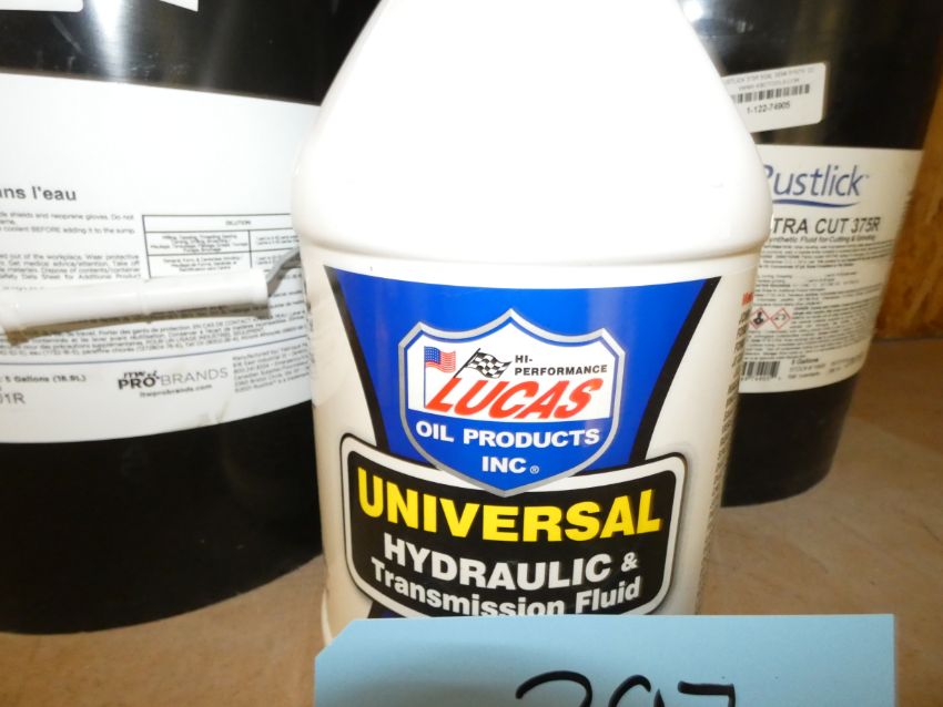 Lot - (2) 5-Gallon Rustlick Synthetic Fluid and (1) Transmission Fluid