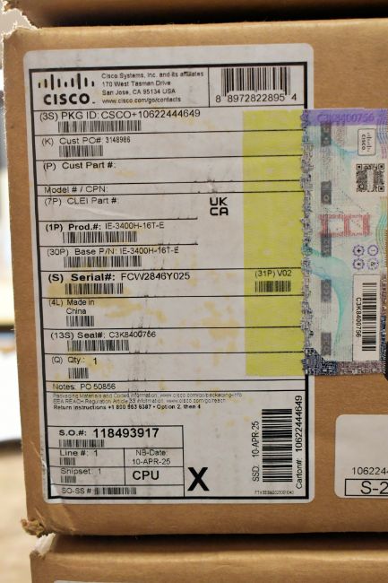 Lot - (3) Cisco IE-3400H-16FT-E Catalyst IE3400 Heavy Duty Series Ethernet Switches with Case Boxes in (1) Stack