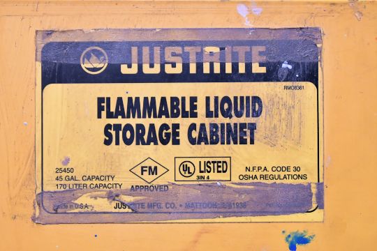 Justrite Model 25450 43" Wide x 18" Deep x 65" High 45-Gallon Capacity 2-Door Flammable Liquid Storage Cabinet