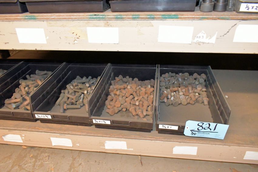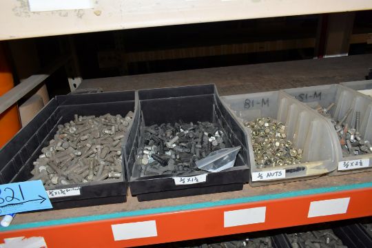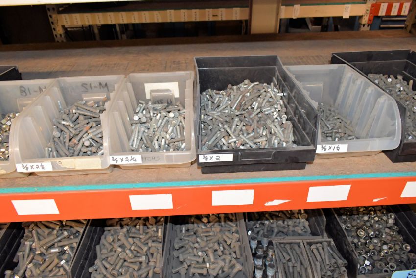 Lot - Hex Head Bolts, Allen Head Capscrews, Nuts and Washers with Bins on (3) Shelves