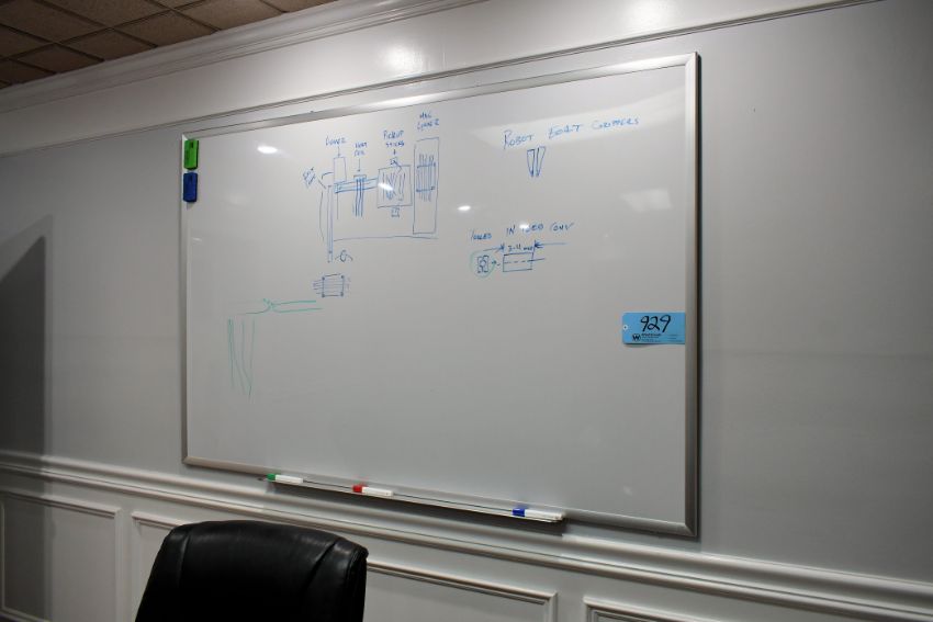 Lot - (1) 34-1/2" x 81" Table, (1) Portable Dry Erase Board and (9) Swivel Office Chairs