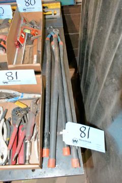 Lot - Pliers, Snips, Shears and Hacksaw in (2) Boxes with (2) Long Handle Nippers