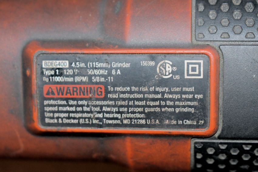 Porter Cable Model PC60TPAG Type 1 4-1/2" 12,000 RPM Electric Angle Grinder with Black & Decker Model BDEG400 Type 1 4-1/2" 11,000 RPM Electric Angle Grinder in (1) Box