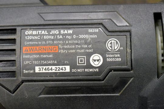 Ryobi Model JS651L1 3,200 RPM Electric Jig Saw with Warrior Model 58258 3,000 RPM Electric Orbital Jig Saw