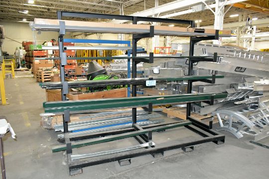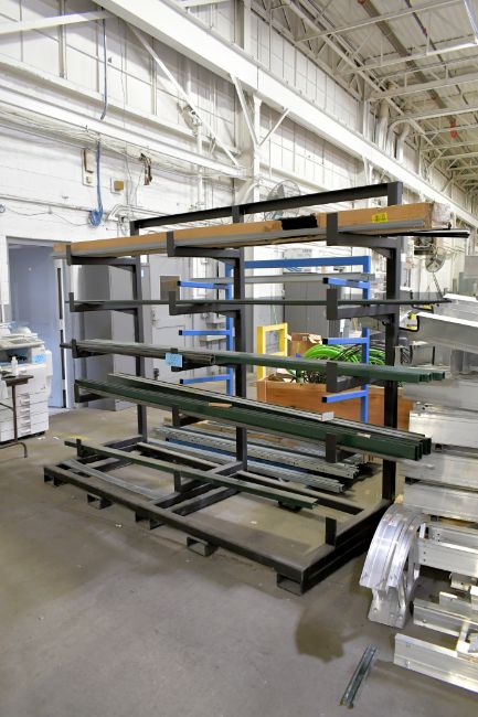 Lot - (1) 96" Wide x 38" Deep x 81" High 5-Tier Single Sided Non-Adjustable Cantilever Stock Rack and (1) 65" Wide x 48" Deep x 69" High 4-Tier Single Sided Non-Adjustable Cantilever Stock Rack with Aluminum Wire Ducts (Located in Bldg 2)