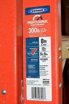 Lot - (2) Werner Model NXT1A08 300-lb. Capacity 8' Fiberglass Step Ladders and (1) Werner Model 6208 300-lb. Capacity 8' Fiberglass Step Ladder