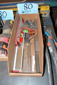 Lot - Tape Measures, Rulers, Combination Squares and Straight Line Markers in (2) Boxes with Levels, Etc.