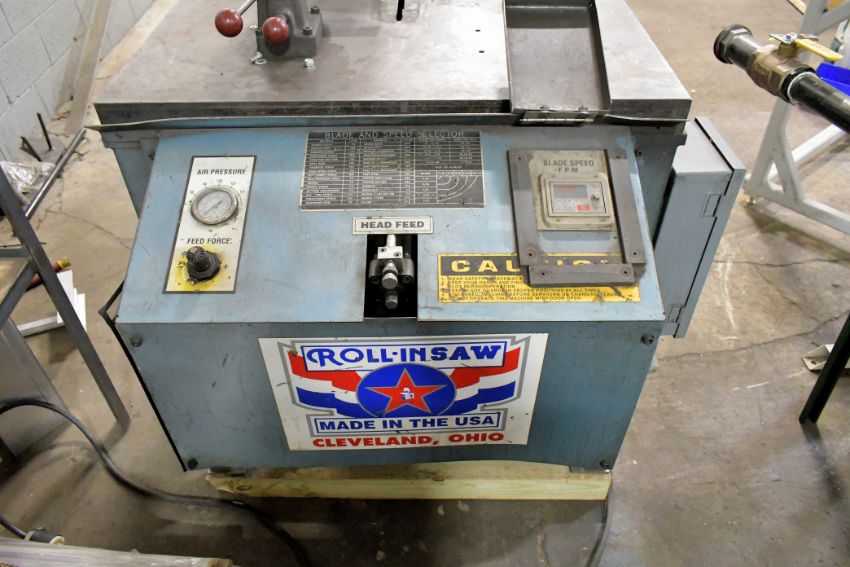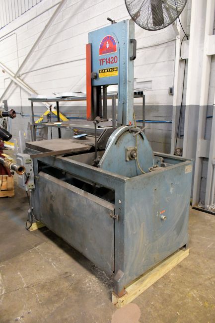 2006 Roll-In Model TF-1420 14" x 20" Tilt Frame Vertical Metal Cutting Bandsaw, s/n 05010TF; 45 Degree Tilt Capacity, 1" Blade Width, 50 to 400 FPM Blade Speeds, 25-1/2" x 31-1/2" Table, 2 HP, 220 Volt, 3 Phase