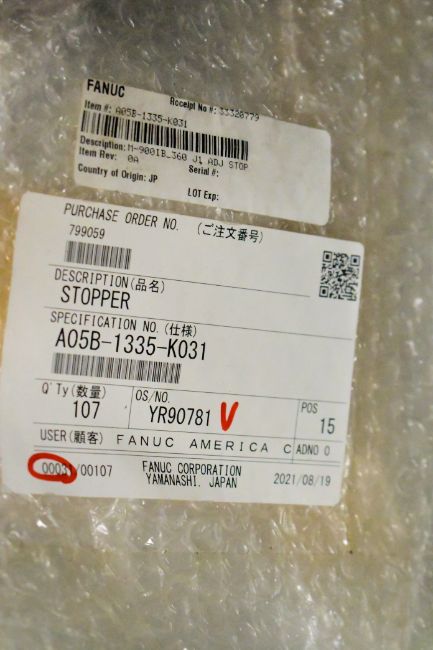 Lot - Fanuc A05B-1335-K031 Stopper and 1,000' Spool of 18 AWG 2-Conductor PVC Jacketed Power Wire