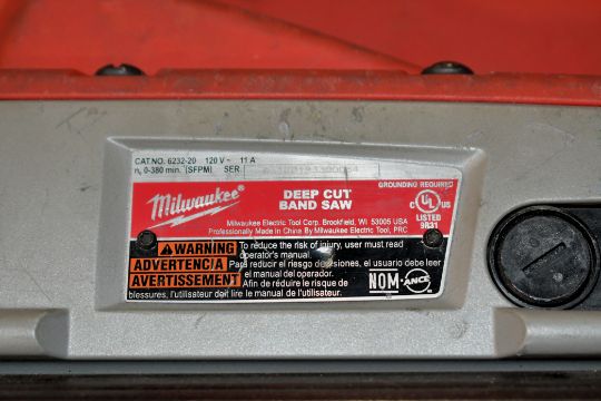 Milwaukee Cat No. 6232-20 Deep Cut Portable Electric Band Saw with Case, s/n D51CD18330084; 380 FPM, 11 Amp, 120 Volt