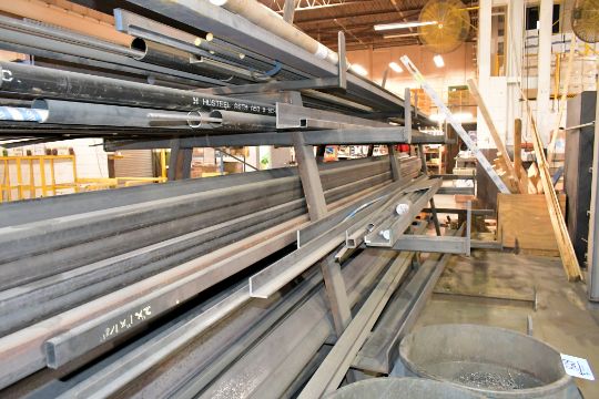 Lot - Flat Bar Stock, Tube Stock, Angle Iron and C-Channel on (1) Rack (Rack Not Included)