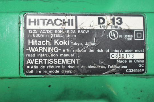 Hitachi Model D-13 1/2" Magnet Base Drill Press with Case, s/n C850173; 630 RPM, 680 Watt, 6.2 Amp, 120 Volt