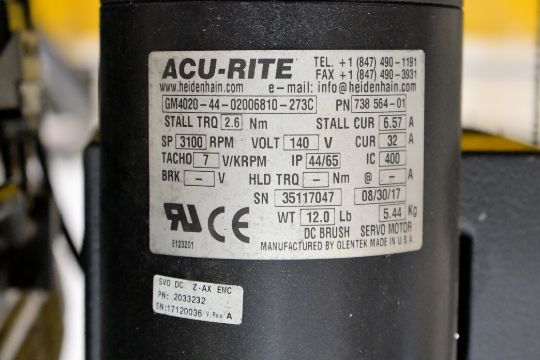 2017 Acer Model E-Mill 3VKH-54 3 HP CNC Vertical Milling Machine, s/n N17030095; Acu-Rite MILLPWR 3-Axis CNC Control, 60 to 4,500 RPM Spindle Speeds, 10" x 54" Power Feed Table, Maxi Torque-Rite Power Drawbar, 1-Shot Lube, Way Cover, Work Light