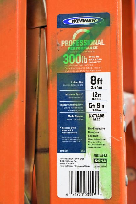 Lot - (2) Werner Model NXT1A08 300-lb. Capacity 8' Fiberglass Step Ladders