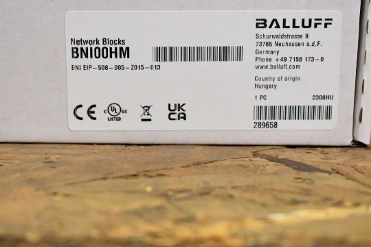 Lot - Balluff BAE00ET Switching Power Supplies, Balluff BN100HM Network Blocks and Balluff BCC0AA6 T-Splitters