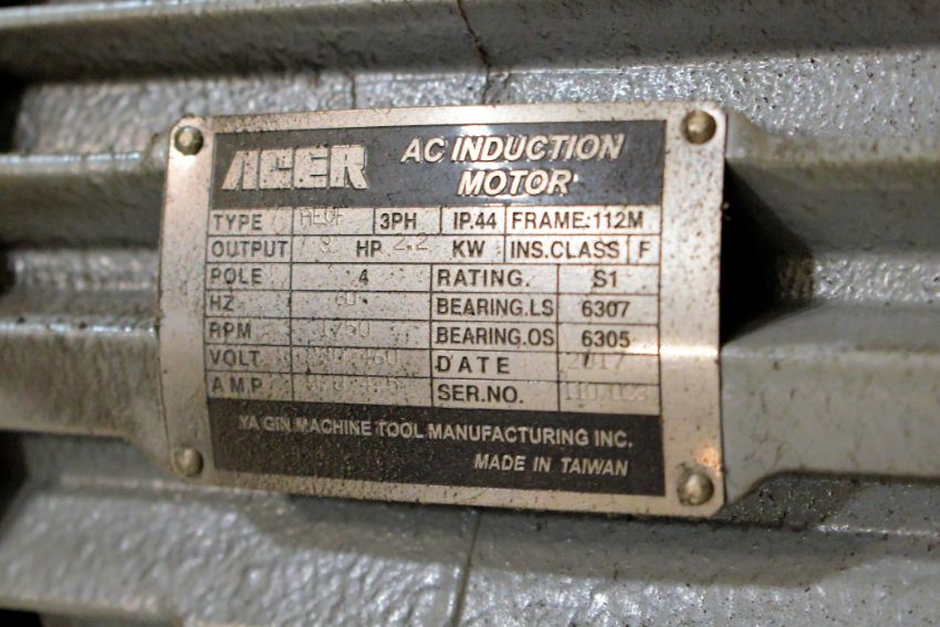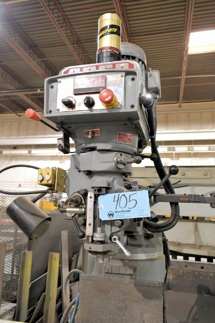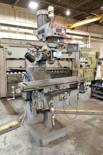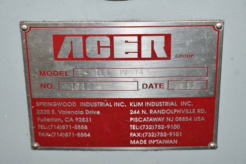 2017 Acer Model E-Mill 3VS-II 3 HP Vertical Milling Machine, s/n N17120556; Newall Model DP700 2-Axis Digital Readout, 60 to 4,500 RPM Spindle Speeds, 9" x 49" Power Feed Table, Maxi Torque-Rite Power Drawbar, 1-Shot Lube, Way Covers, Work Light