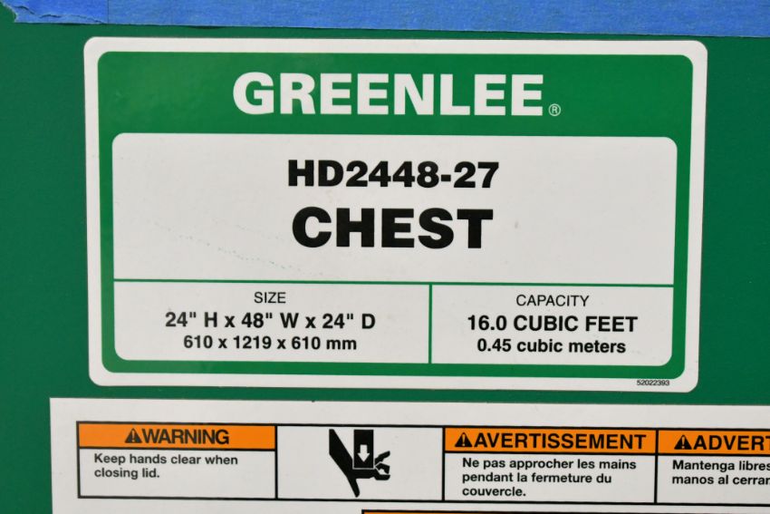 Greenlee Model HD2448-27 48" Wide x 24" Deep x 24" High 16 Cu. Ft. Capacity Portable Job Box