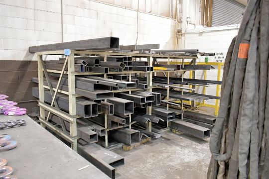Lot - Tube Stock, Flat Bar Stock and Angle Iron on (1) Rack (Rack Not Included)
