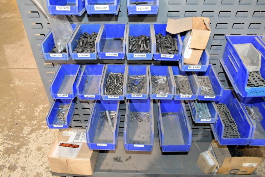 Lot - (2) A-Frame Hanging Bin Carts with Metric Allen Head Capscrews, Washers and Dowel Pins