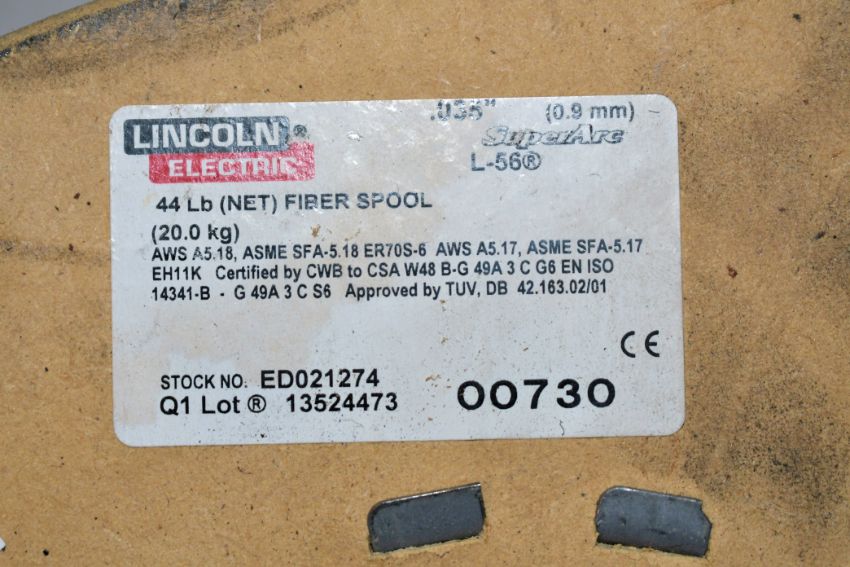 Lot - (3) Spools of Mig Wire in (1) Stack, Including: (1) 44-lb. Spool of Lincoln Model Murematic S3 0.035" Mig Wire and (1) 44-lb. Spool of Lincoln Model SuperArc L-56 0.035" Mig Wire