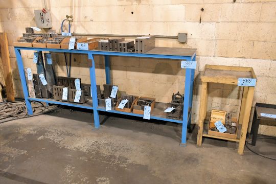 Lot - (1) 96" Wide x 19" Deep x 42-1/2" High Steel Rack, (1) 78-1/2" Wide x 19" Deep x 42" High Steel Rack, (1) 20" x 20" Steel Stand and (1) 11" x 36" Steel Stand (Contents Not Included) (Not To Be Removed Until Empty)